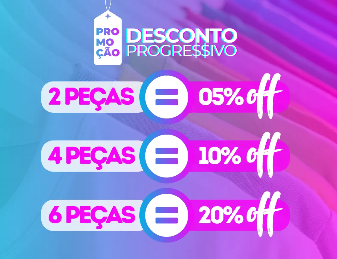 Desconto progressivo acima de 2 peças.
